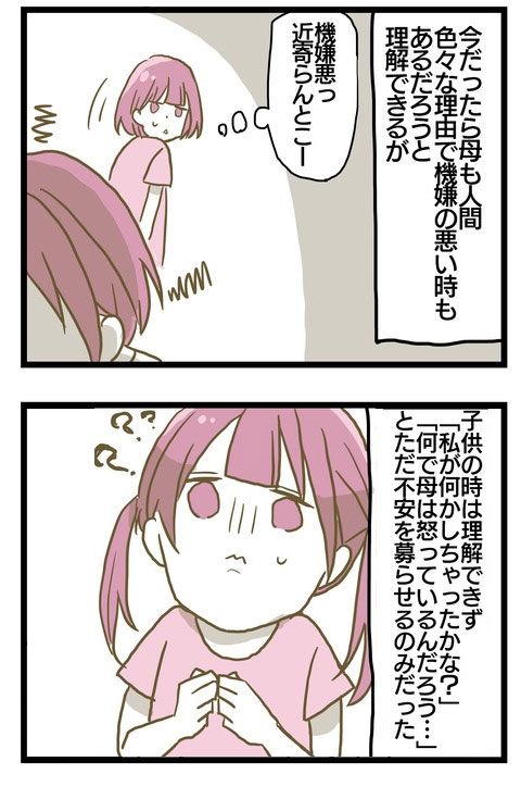でも、子どもの時の私はそれがわからず「何で母は怒っているんだろう」「私何かしてしまったかな?」とただただ不安だったのです…。