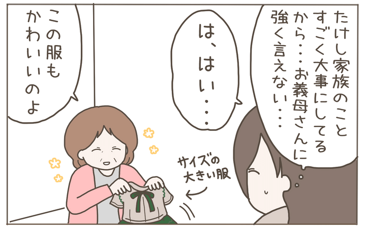 2年の交際期間を経て、恋人のたけしと婚約を交わした主人公・トモ香。結婚の挨拶でおとずれた義実家で初対面した義母はフレンドリーでトモ香にも好意的。少し距離が近いな…と思いつつ、良好な関係を築けると安心したのでした。結婚後すぐに妊娠がわかり、妊娠3か月で義両親に報告。「きつい時はいつでも頼ってね」と温かい言葉をかけてくれる義母。しかし、妊娠報告をしてから、義母からは頻繁に連絡がくることに。妊娠初期はつわりがひどく、義母にも伝えていたはずが…大量の作り置きを持参して、自宅をたびたびおとずれる義母。赤ちゃんのためにもたくさん食べないと、とプレッシャーをかけられることに。