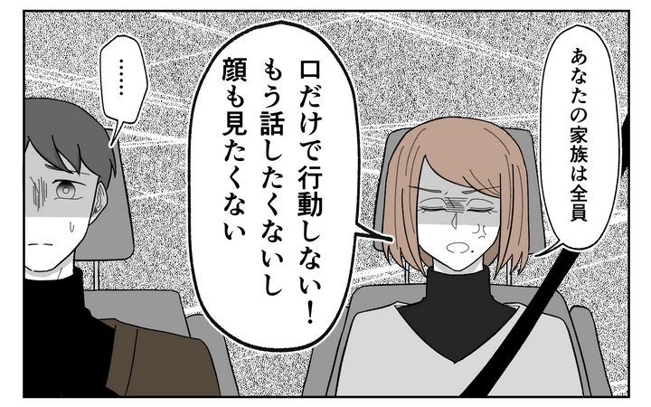 今までためてきた鬱憤が爆発するかのように、夫に義実家への不満をぶつけました。夫の家族は全員、口だけで行動しない! もう誰とも話したくないし、顔も見たくない! 私は夫にも義実家にも失望し、匙を投げたのです。