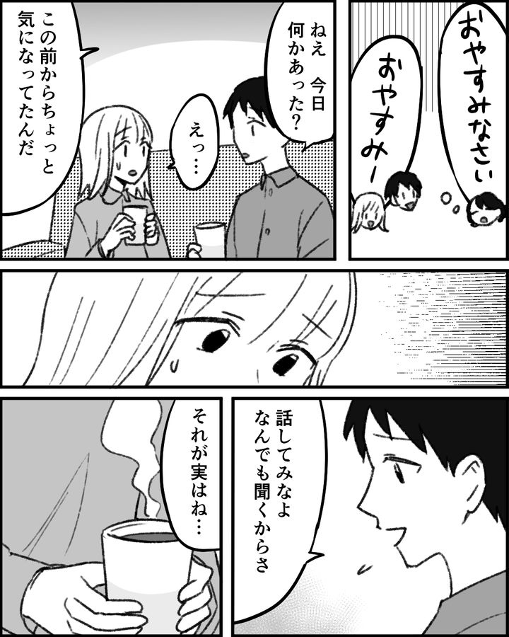 3人で楽しく過ごしていると思っていたのですが、ある日、義母と過ごしたあとの妻の様子がおかしいことに気づきました。