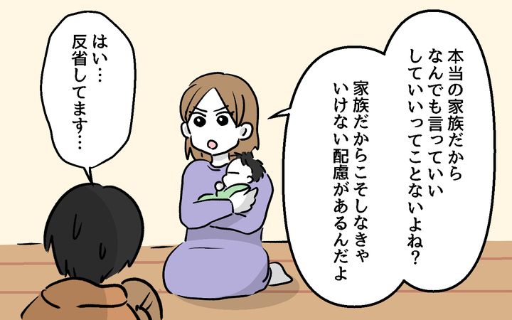 このままなら本当に夫との離婚を検討するところでした。義父もですが、夫にも今後言動にはくれぐれも注意してもらいたいものです…。