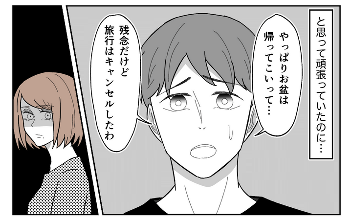 夫は勝手に旅行の予約をキャンセルしていたのです。孫に会いたい義父の期待に応えてあげるって…どういうこと? 私の旅行への期待はどうでもいいの…?