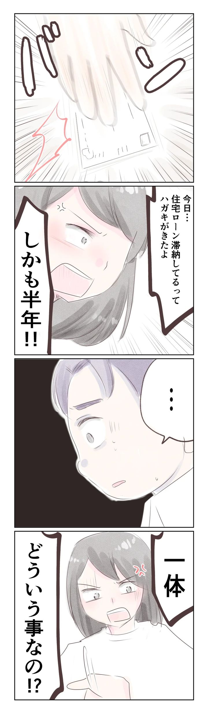 帰宅した夫に住宅ローンのハガキを見せた美穂さん。すごい剣幕になってしまいましたが、無理もありません。