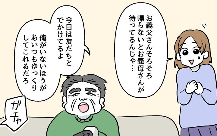 居座り続ける義父…まさか夕飯も食べるつもり!? 能天気な夫にも腹が立つ <デリカシーのない義父 6話>【非常識な人たち まんが】