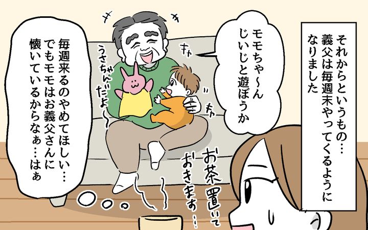 娘は義父に懐いているけれど、私はいつまたセクハラまがいのことをされるのか、気が気じゃありません。夫と義父の言動に堪忍袋の緒が切れそうになるのを耐える日々です…。