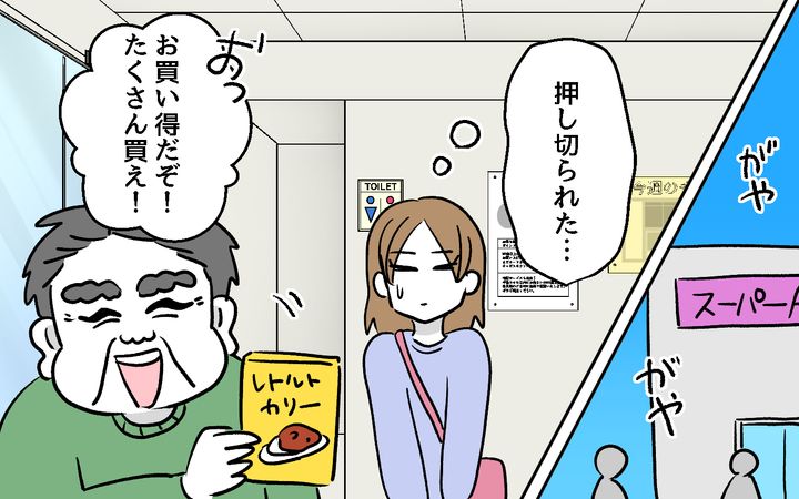ほどなくして、義父は毎週末、我が家で過ごすようになってしまいました。相変わらず夫は私の話を聞いてくれず、私と義父2人で買い物に行かせようとしてきて…。