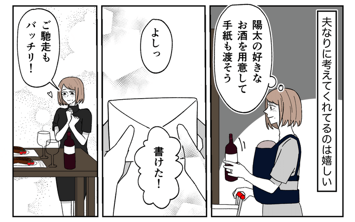 夫なりに考えてくれているようで「当日期待してて」と言われました。嬉しくなった私はプレゼントとお手紙を用意し、当日はご馳走を作り、オシャレをして待っていたのですが…。