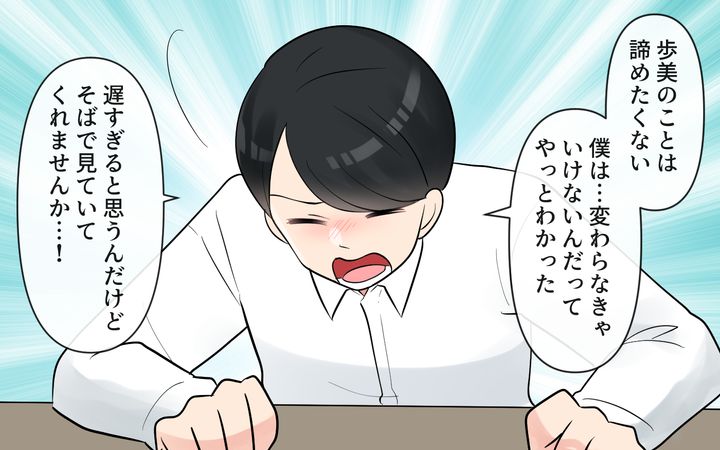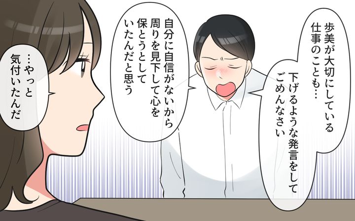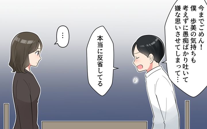 俊也の行動が原因で家を出て行ってしまった歩美。いつものようにSNSでそのことを愚痴ろうとした俊也だが、それをしても何も変わらないことに気づく。これまで自分の気持ちでいっぱいいっぱいになって、受け取る人の気持ちを考えられていなかったことにようやく気づいた俊也がとった行動は…?