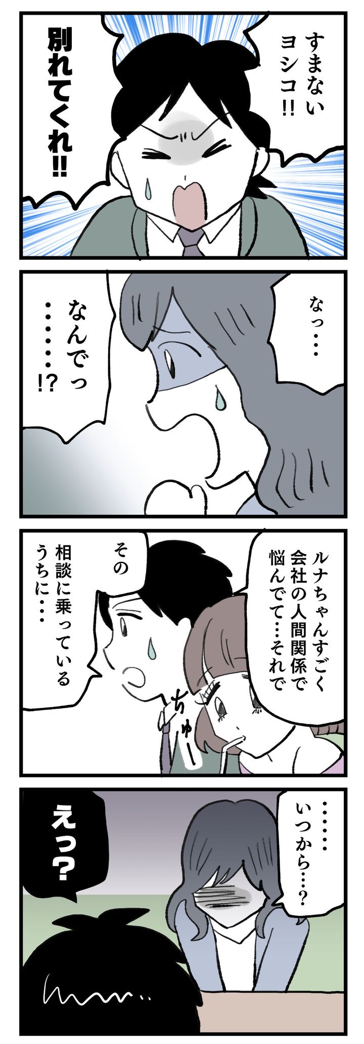 彼氏と付き合っていた間、ずっと同時進行でルナとの恋愛関係にあった。しかも、突然「別れてほしい」だなんて、さすがに情報量が多すぎます。