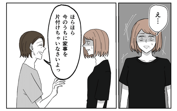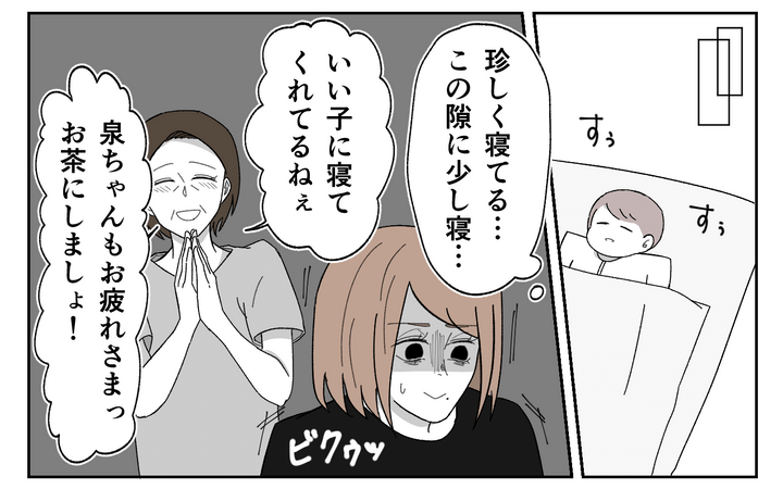 義母が来たら睡眠を取ろうと思っていたのですが…。開口一番「赤ちゃん見てるから家事やっちゃいなさい」と笑顔で言われて、ボーっとした頭では何も言い返せませんでした。