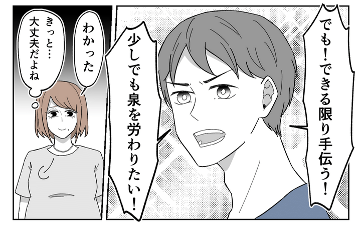 結婚と同時に妊娠の挨拶をすることに不安を覚える泉。しかし陽太の家族は快く受け入れてくれたうえ、義父は孫の学費は出すから安心するようにとまで言ってくれた。高額なお祝いも渡してくれ、泉は嫁ぎ先に経済力があることがわかり安心したのだった。しかしその後突然義両親がいずれ二世帯で住もうと提案し、泉は戸惑う。