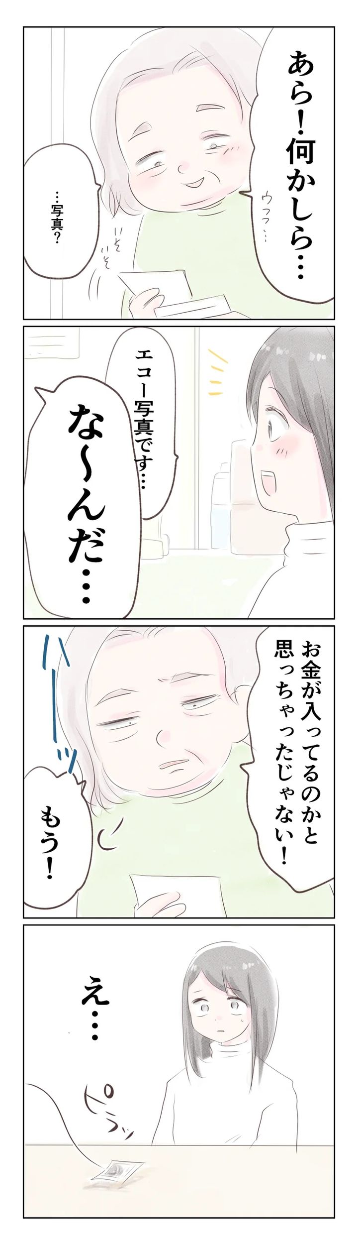 病院からもらったエコー写真が入っていた袋を渡すと嬉しそうな義母。