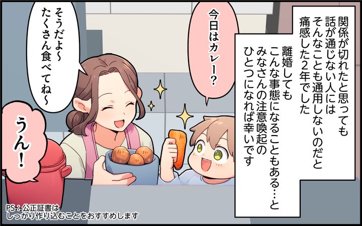 その後は、元夫からも連絡はありません。弁護士さんの話では、私とやり取りしないように再婚相手が目を光らせているとのことでした。