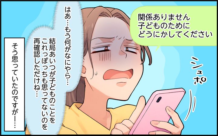 養育費は息子の将来を支える大事なお金です。それを減らしてほしいだなんて…。元夫が息子のことをこれっぽっちも考えていないことがよくわかりました。