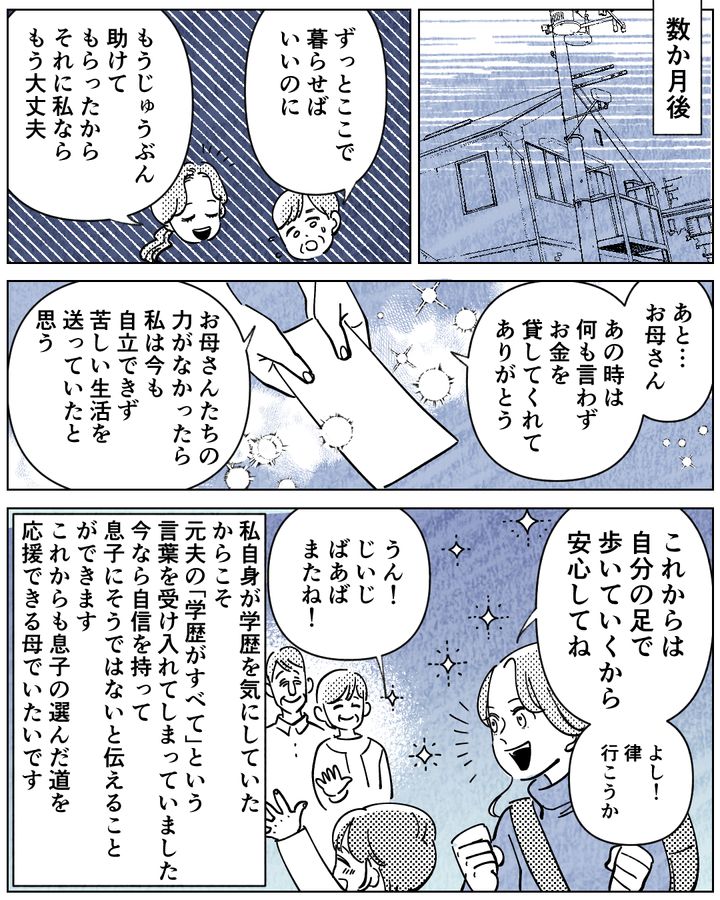 私は学歴にとらわれず、自分で自分の人生を切り開き、息子と幸せに生きていくことができるようになりました。