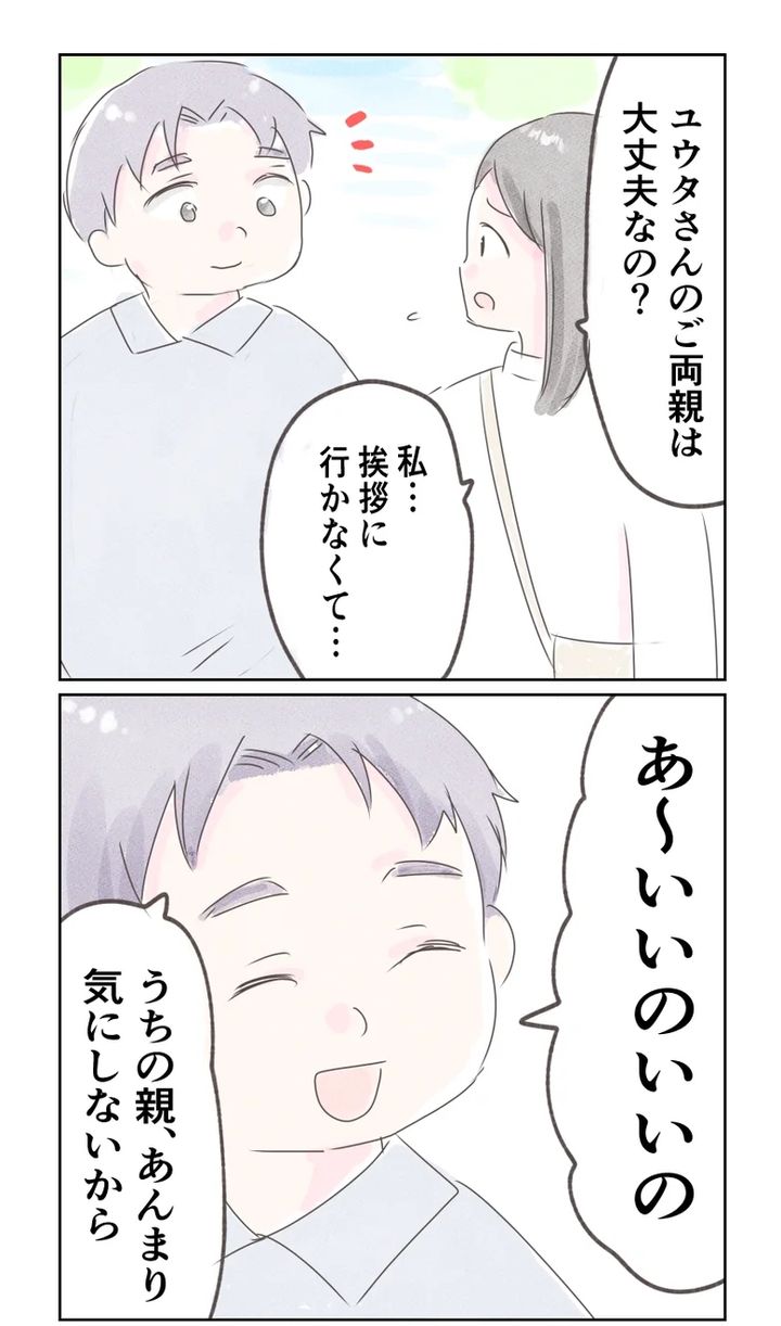 いっぽう、ユウタさんは両親と不仲というわけではなさそうですが…なぜか結婚の挨拶は不要だと言います。自身もワケありの美穂さんとしては気を使わなくて済んでありがたいことですが、これからもお付き合いがあるのに、本当にそれでいいのでしょうか…?