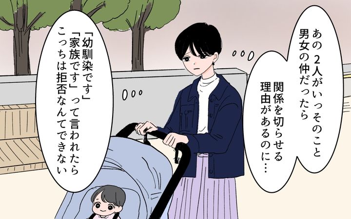 夫・コウタの地元で結婚生活を送るミキ。夫は妻との時間よりも、付き合いの長い友だちとの時間を優先させることが多かった。なかでも中学からの「腐れ縁」というレイカと2人きりで飲むことも。ある日夫から「子どもの面倒は自分が見るから」とひとり時間をもらったミキ。しかし帰宅後、その提案をしたのがレイカだったとわかり、妻は激怒する。