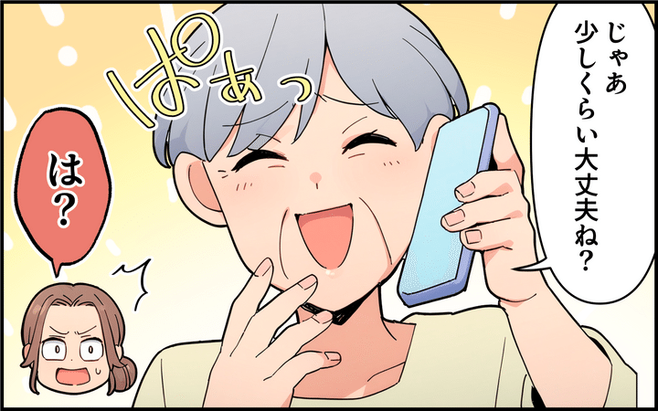 桃はモラハラ夫から養育費その他もろもろを勝ち取って離婚。やっと自由になれると思っていた矢先、義母から今後も孫に会わせてほしいと泣きつかれて連絡先を交換してしまう。その後、孫へのプレゼントと現金が送られてきた。離婚が成立している手前、現金は受け取れないと伝えても譲らない義母。さらに義母はやたらと電話をかけてきては無駄話をするようになり、「桃ちゃんを娘のように思っている」と言うが…。