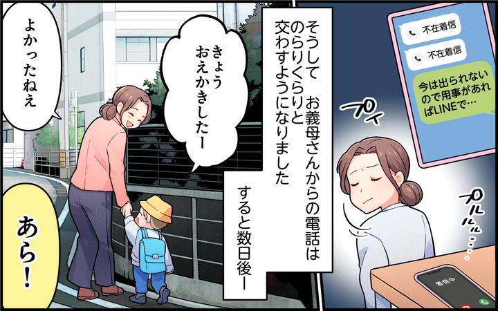 そうして電話にも出ない日が続いたある日、なぜか家のそばにお義母さんがいて!?
