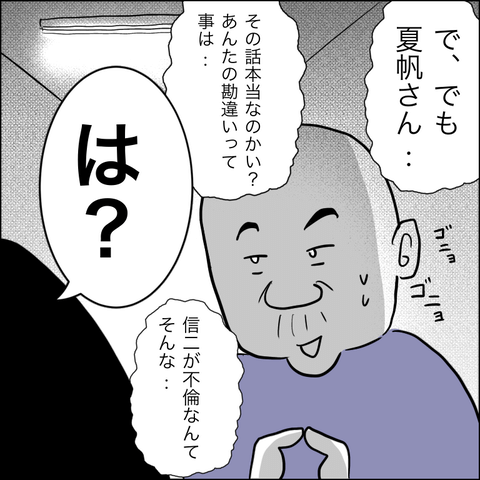信二がこんなことになったのは夏帆のせいだと主張する息子大好き義父に、夏帆はこれまでの過程を事細かく説明しました。