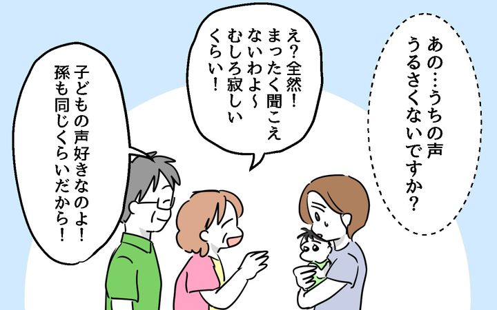 反対側のお隣さんはやさしいご夫婦で、会えばいつも気さくに話しかけてくれます。「子どもの声が好きなの」と言ってもらえて泣きそうになってしまいました。