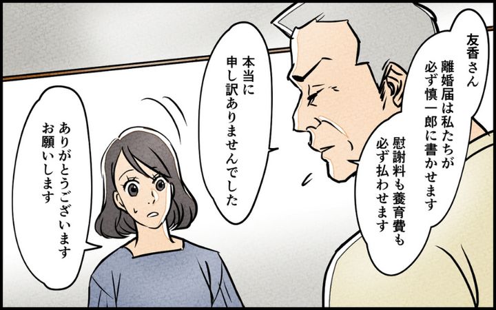 職場で叱られることが多い慎一郎は、ストレスから妻子が笑っているだけでもイラつくようになっていた。その理不尽な言動は日増しにエスカレートしていき、妻・友香は怯えた生活から逃れるために娘を連れて実家に帰っていった。離婚の話し合いの場でも傍若無人な態度の慎一郎だったが、そこに厳格な父親が現れて…。