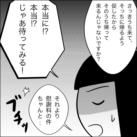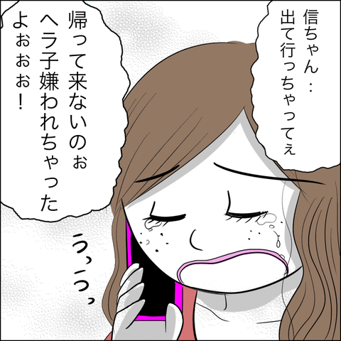 慰謝料の件があるので、きっちり話をつけようと思っていたものの、ヘラ子は泣きながら信二が帰ってこないと大騒ぎ。