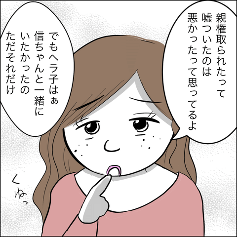 親権を取られたと平気で嘘をつき、真っ当な慰謝料も払う気がないヘラ子に愛想を尽かした信二は別れを告げます。