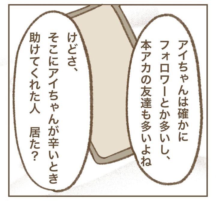 やっぱりアイちゃんは変わっていなくて、今も誰かに寄生しながら心の中では見下して過ごしているのでしょうか…。