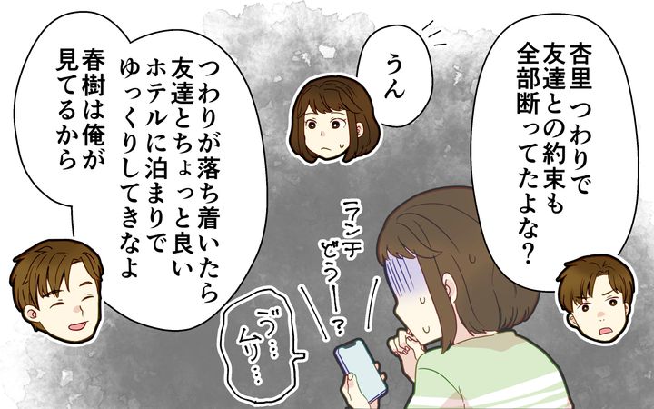 つわりが重い杏里は夫の岳にサポートを求めるも、理解してもらえない。そんなある日、岳が女性と連絡先を交換したことが発覚。何もなかったが、杏里を傷つけたことを岳は反省し、杏里の状態や気持ちを知ろうと思い…。