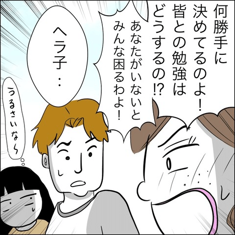 主人公・夏帆は妊娠6ヶ月でありながら、夫・信二から突然理学療法士の学校に通うと宣言されます。同居する母に協力してもらいながら産後すぐに働き始めた夏帆でしたが、信二はクラスメイトと勉強会と言って家に帰ってこない日が多々。久々に帰宅した信二を問い詰めていると、外で女性が待っていることに気付きます。クラスメイトだというヘラ子に直接挨拶しに行った夏帆でしたが、ヘラ子は信二のもとに駆け寄り体を密着させます。ただならぬ距離感に苛立った夏帆がヘラ子の腕を掴むと、暴力だと信二からもヘラ子からも責められ唖然…。そこに母が現れ、ヘラ子との関係を疑ったのか信二にもう帰ってくるなと宣言。突然の離婚危機に戸惑う信二と夏帆でしたが、「勉強に集中できるからちょうどいい!」というヘラ子の一言で信二はあっさり寝返ります。そして母がいない週末にだけ家に帰ると勝手に決めてしまい、ほくそ笑むヘラ子を見てカッとなった夏帆は信二を引き止め…。