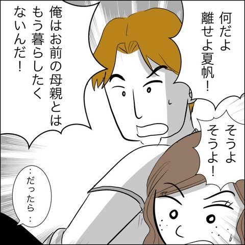 義母に対する不満が家に帰らない本当の理由かどうかはさておき、ヘラ子から信二を切り離すために夏帆はアパートを借りて子どもと3人で暮らそうと提案します。