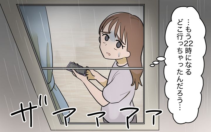 甥っ子が家を飛び出したきり、何時間も帰ってこないと聞いて驚きました。兄はもしかしたらうちに行ったんじゃないかと思ったようで…。夫に電話すれば、探しながら帰ってくるそう。でも、こんな日に限って外は雨…。