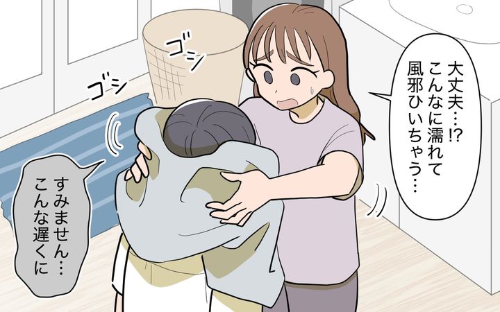 夜も遅く、心配でいても立ってもいられなくなった私。せめて家の周りだけでも…と、玄関を開けました。すると…全身ずぶ濡れの甥っ子が立っていたのです。慌てて家に入れてタオルで頭を拭いてあげると、嗚咽が聞こえてきて…。