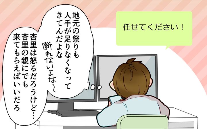 妻はつわり中だけど、義両親に来てもらえば問題ないだろうと思い、参加表明。さらに帰省中にゴルフに行かないかと誘われて…! 妻の手前、なかなか行けないゴルフ。ずっと我慢してたし、この機会に行くしかないでしょ!