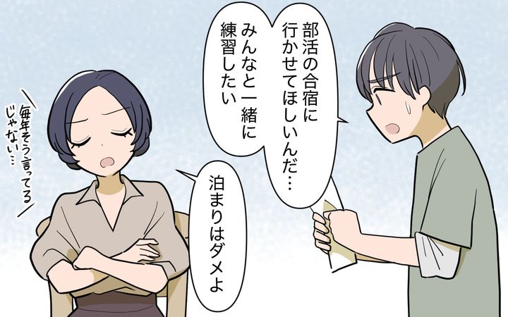 私は部活の合宿は行かなくていいと思っています。でも夫が私の反対を無視して、息子を行かせることに決めました。未熟な子どもの意思を尊重するなんて…。案の定、息子は初めての合宿に浮かれていて、勉強に熱が入っていないように見えます。