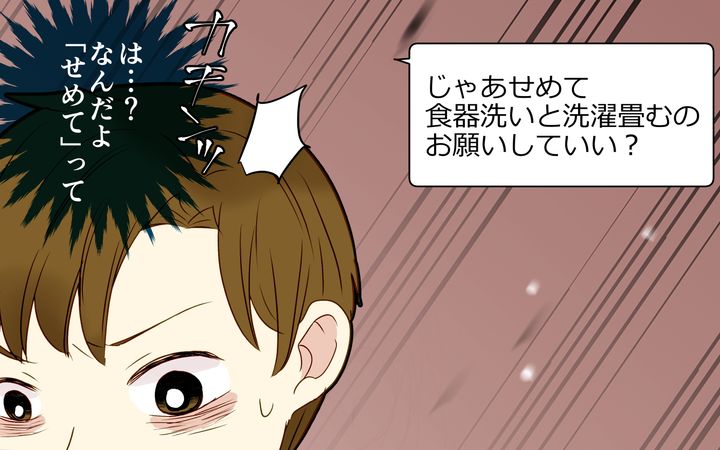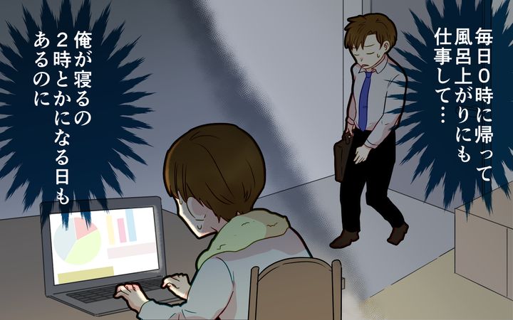 無理だと伝えると、「じゃあせめて」と食器洗いと洗濯物を畳む家事を押し付けてくる妻。深夜に帰宅して、風呂上がりにも仕事している俺に、睡眠時間をさらに削って家事をしろと? でも妊婦の妻相手に嫌だなんて言えるわけはなく…。俺はやけくそになりながら「やる」と答えるのだった。