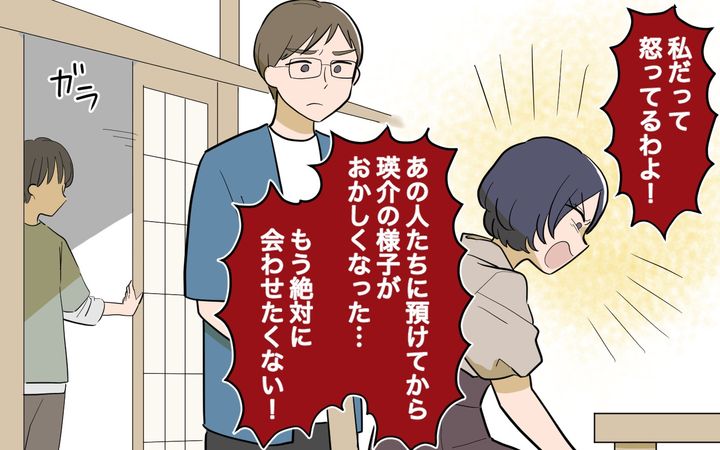 私にあんなこと言うような子じゃなかったのに…。あの人たちは息子にとって悪影響でしかありません。夫には「もう絶対に会わせたくない」と訴えましたが、困った顔をされてしまいました。そんな時に息子から私たちに話があると言われて…。