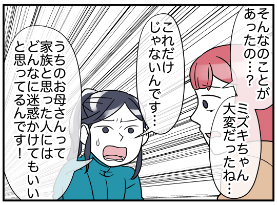 これだけではないと訴えるミズキですが、家族だと思った人には迷惑をかけて構わないというミドリの本性とはいったい…?