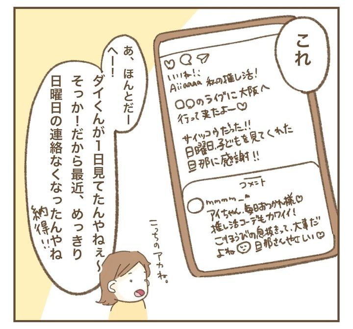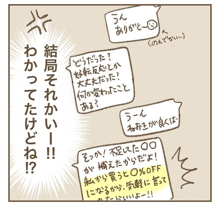 ママ友のアイちゃんがつわりで辛いと言うので、ねぼすけは上の子を預かることに。しかし毎週続く依頼や、SNSで元気な姿を見せる彼女に違和感を抱き、距離を置くことに。アイちゃんの出産後、ねぼすけも妊娠・出産。感染症が流行しているため出産祝いの訪問を断るも、アイちゃんはノーマスクで押しかけてきます。さらに、娘がおさがりのおくるみを使っていることをあざ笑い、お古を売ってあげるなどと言うのでした。モヤモヤするねぼすけを残し、アイちゃんは使いかけのサプリを押し付けて帰って行ったのでした。
