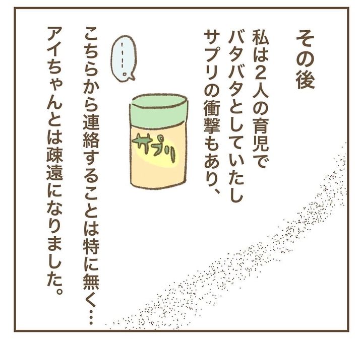 SNSでさすがに他の友人たちに子どもを預けるのは辞めたことを知ります。しかし共通の友だちから彼女の衝撃の近況を知ることになるのでした。