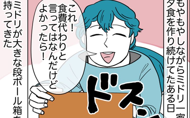主人公・ライコミは夫の転勤を機に義実家で同居を始めますが、義父母との関係は良好とは言えず、夫も味方にはなってくれませんでした。そんな中、隣人・ミドリに出会い、彼女の助けを得て家事育児をなんとか乗り切ります。義父母が亡くなった後、ライコミとミドリは家族ぐるみの付き合いを続け、ライコミは下の子が小学生になるタイミングで在宅ワークを始めます。ミドリもフルタイムで働き始めましたが、5年後、ミドリの長女ミズキが妹と祖母のお世話を1人で抱えていることを知ったライコミは、その負担の大きさに疑問を感じるようになります。ふとしたきっかけで、ある時からいつの間にかミドリ家全員分の夕飯を用意するようになってしまったライコミ。モヤモヤが募る中、ミドリが食費代わりにと大きな箱を持ってきました。中身を確認すると、大量の賞味期限切れの食品だったのです。