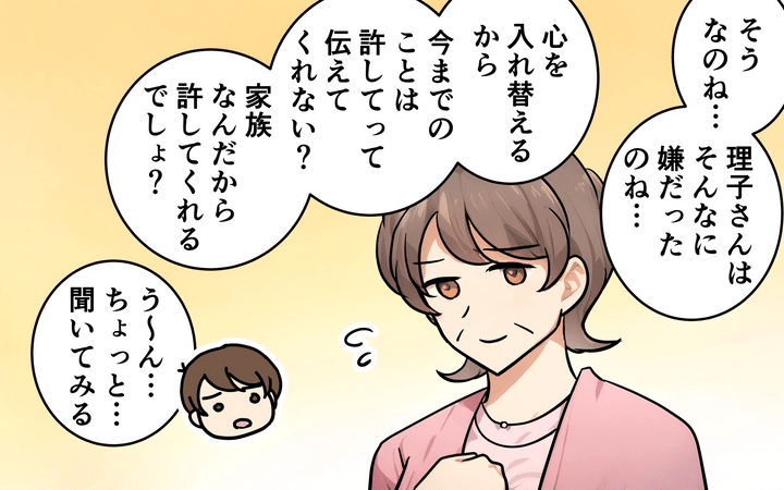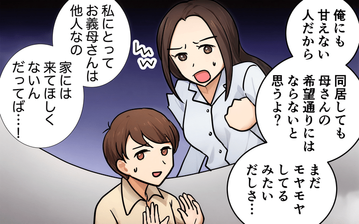妻は幼い頃に母を亡くしており、夫は“自分の母親に実母のように甘えてほしい”と思っていた。しかし妻は、甘えるどころか「義母と距離を置きたい」という。無理に距離を縮めようとする義母と夫に、妻はうんざり。出産後もその関係は変わらなかったが、夫は義母から「みんなでうちで暮らさない?」と同居を提案されて…。