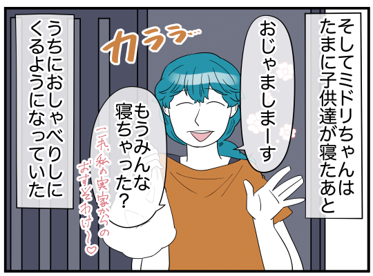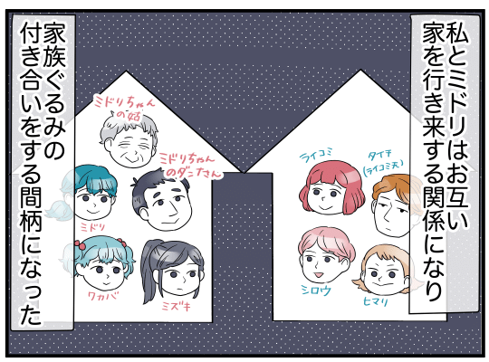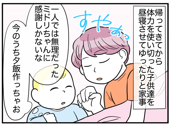 精神的に楽になった為か、家事も育児もうまくいくようになり、ミドリの存在に本当に助けられたと感じるライコミ。