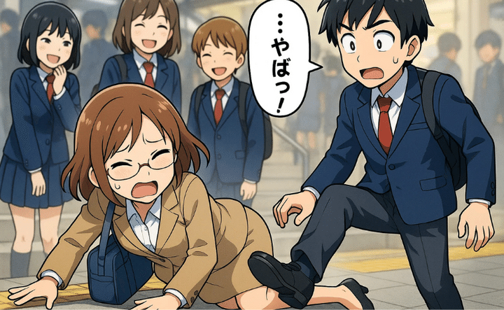 ある朝、職場の最寄り駅で下車し、階段を降りていたときのことです。背後にいた高校生に靴を踏まれた拍子に、私は階段の下で転んでしまいました。その瞬間、多くの人の視線が一気に集まり、一部の高校生からは「やばっ」とクスクス笑う声も聞こえました。