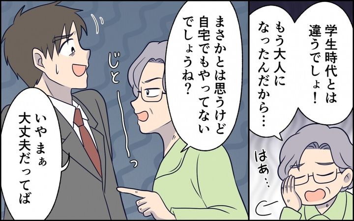 ・つまみは出さない、吐いたものも片付けない。夫を甘やかすから治らないんだよ。