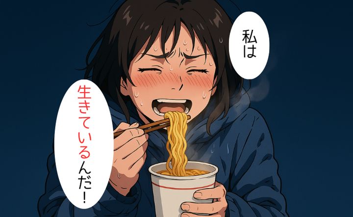普段もたまに食べていたカップラーメンでしたが、このときの味はまるで別物でした。立ちのぼる湯気のにおいを鼻から吸い込んだ瞬間、「私は今、生きているんだ」と心の奥から実感が湧き上がりました。