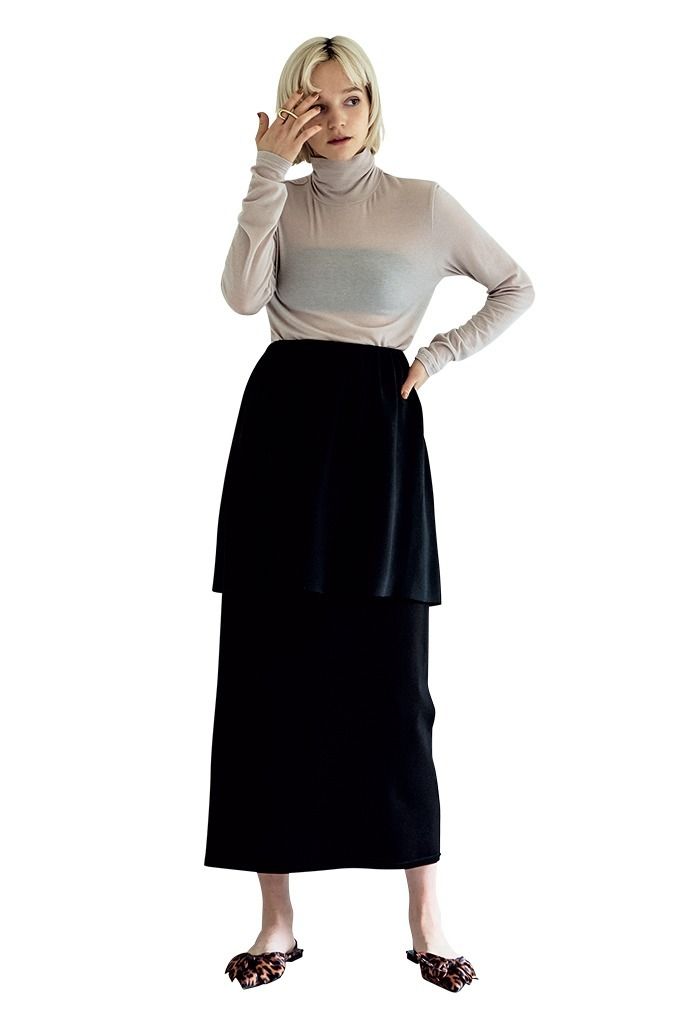 使い回しやすい細ヒール+先細トゥの究極シンプルな一足。エナメル加工をほどこしたツヤ感のある黒なら、簡単にキレイな印象がそなわり、合わせる服を選ばない。