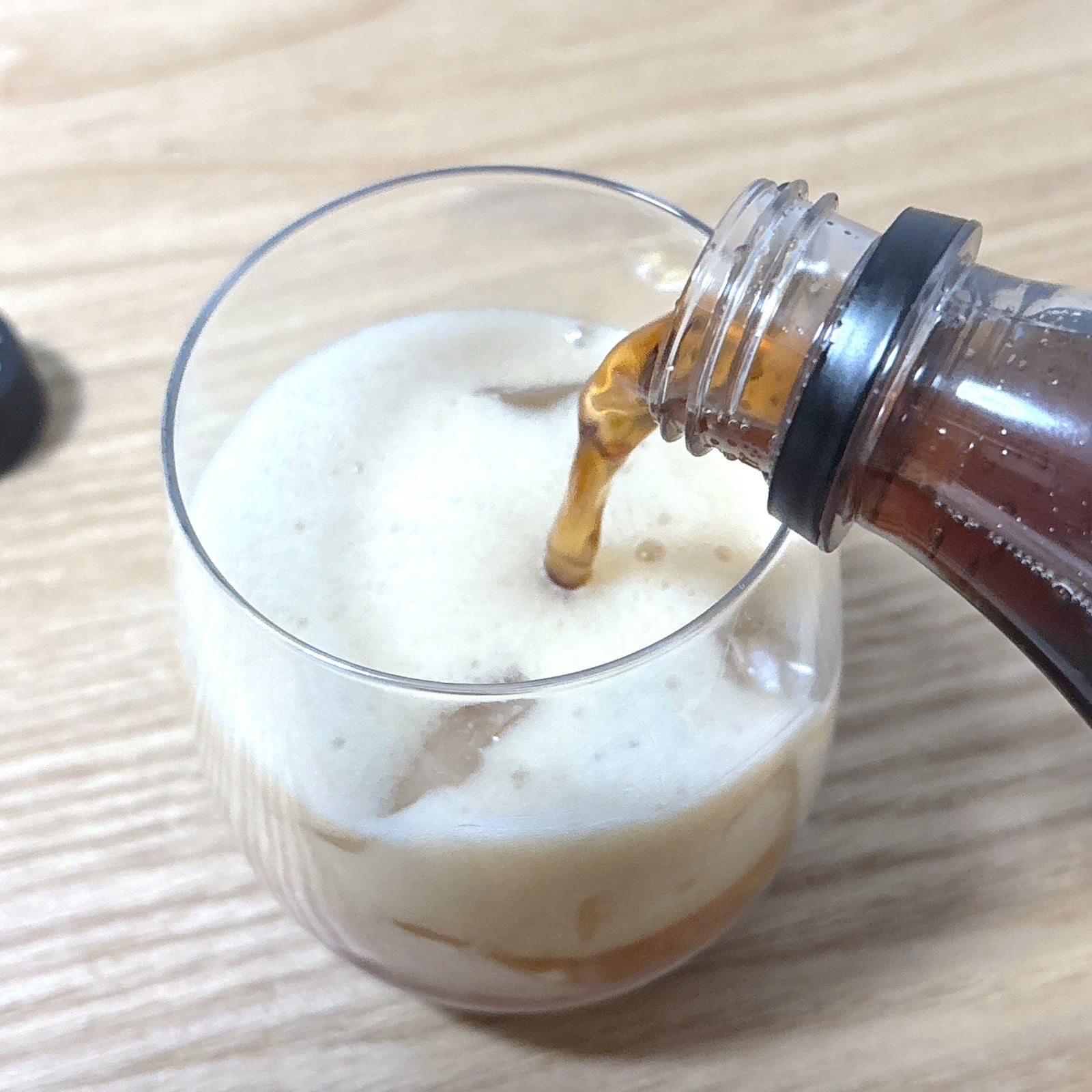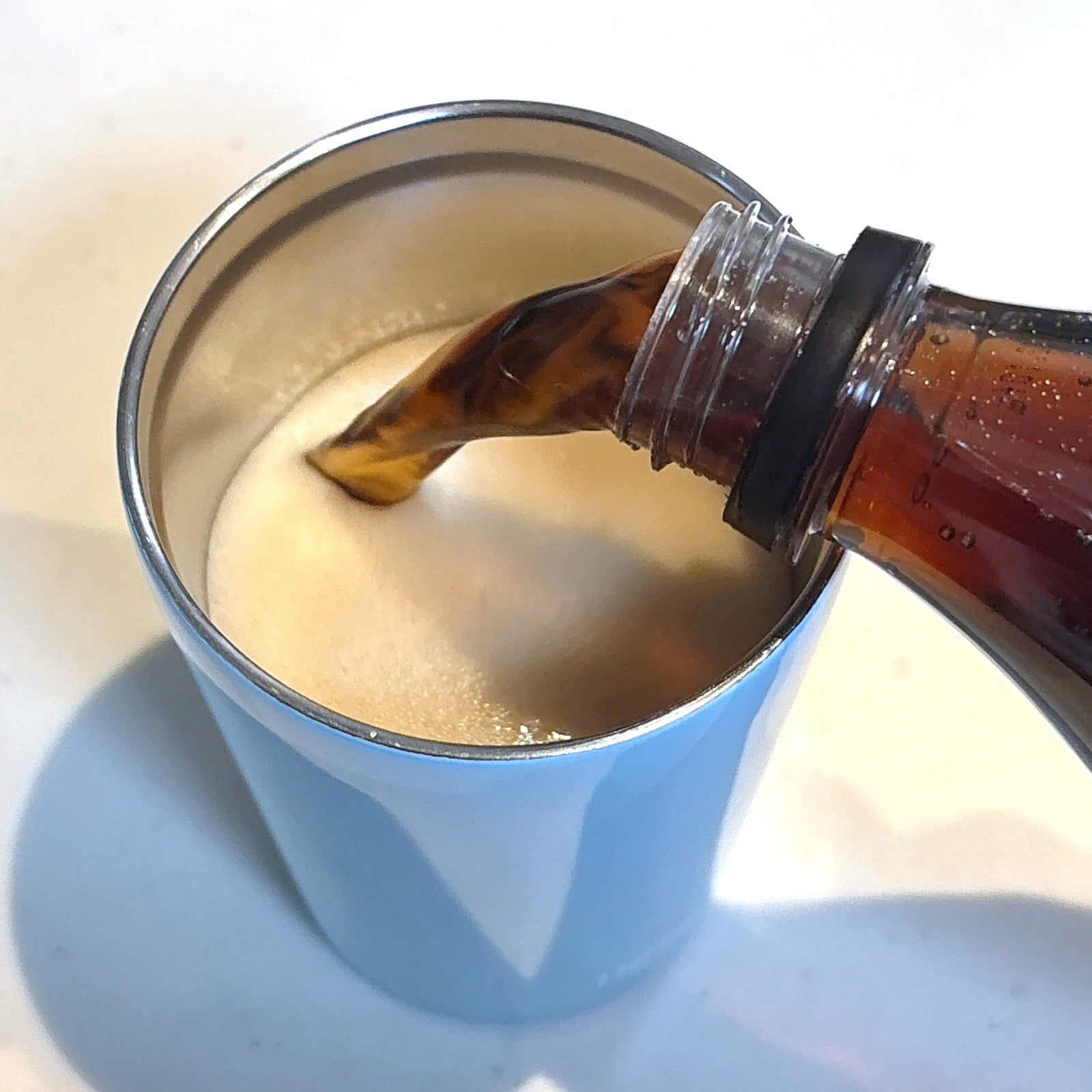 注ぐときは、コップを斜めに傾けてゆっくりとコップの縁に沿わせるように注ぐのがポイント。注ぐときの衝撃をやわらげると、炭酸の抜け具合は最小限に抑えられます。