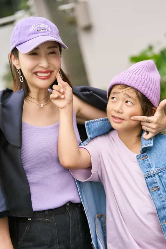 ハロウィンの時期は、毎年テーマパークに行くのが恒例。仮装して楽しむこともありますが、今年は鮮やかなパープルで息子と色リンクをしてみました。ちょっと派手なくらいがテーマパークにはちょうどよい! パープルは男の子でもぐっとおしゃれ見えするからリンクコーデにもおすすめです。